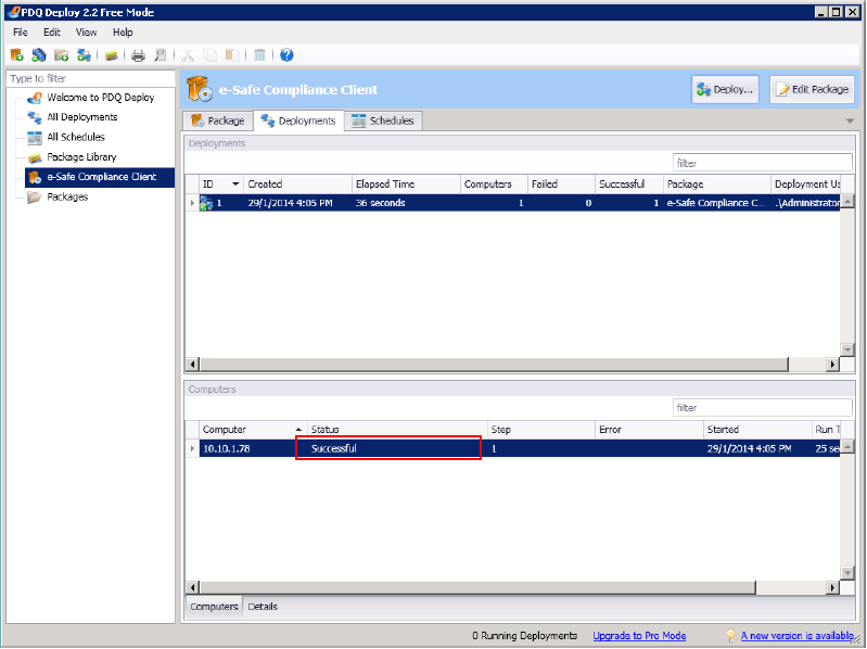 Once deployment is complete, the status will display as Successful for each device where the installation finished.
