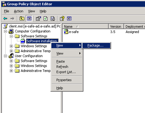 In the editor, expand Computer Configuration > Software Settings > Software Installation.