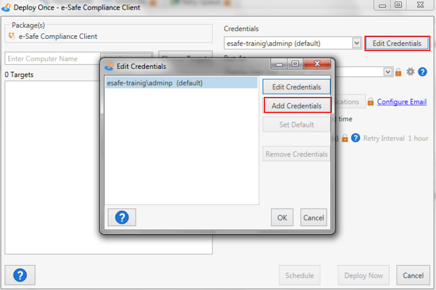 Click Edit Credentials > Add Credentials to set or edit the administrator credentials for deployment.