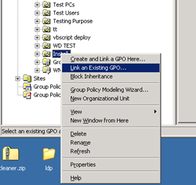 In the Group Policy Management Console, right-click the new OU and select Create and Link a GPO Here.